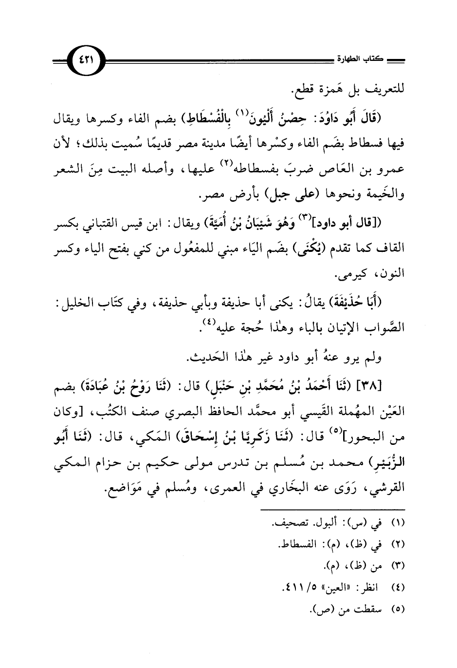 [38] (ثَنَا أَحْمَدُ بْنُ مُحَمَّدِ بْنِ حَنْبَلٍ) قال: (ثَنَا رَوْحُ بْنُ عُبَادَةَ) بضم العَيْن المُهملة القَيسي أبو محمَّد الحافظ البصري صنف الكتُب، [وكان من البحور] (¬5) قال: (ثَنَا زَكَرِيا بْنُ إِسْحَاقَ) المَكي، قال: (ثَنَا أَبُو الزُّبَيرِ) محمد بن مُسلم بن تدرس مولى حكيم بن حزام المكي القرشي، رَوَى عنه البخَاري في العمرى، ومُسلم في مَوَاضع.