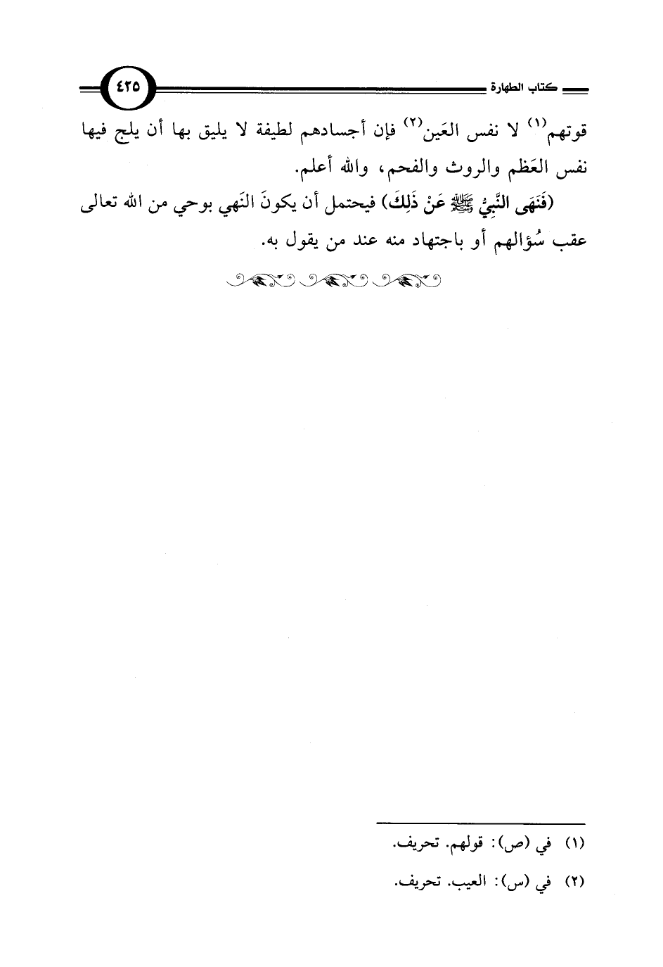 قوتهم (¬1) لا نفس العَين (¬2) فإن أجسادهم لطيفة لا يليق بها أن يلج فيها نفس العَظم والروث والفحم، والله أعلم.