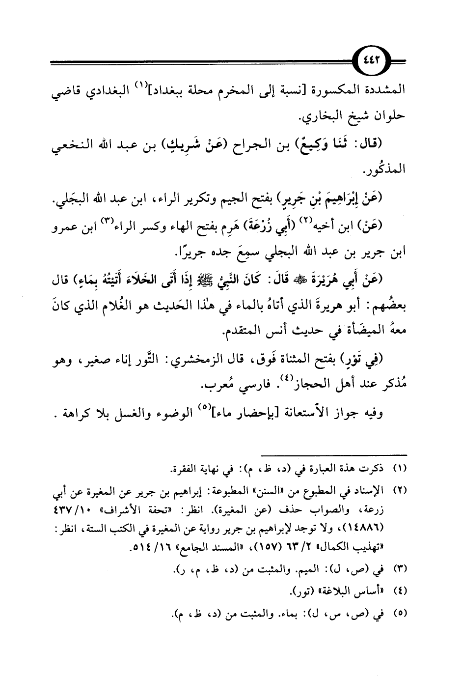 (¬2) الإسناد في المطبوع من "السنن" المطبوعة: إبراهيم بن جرير عن المغيرة عن أبي زرعة، والصواب حذف (عن المغيرة). انظر: "تحفة الأشراف" 10/ 437 (14886)، ولا توجد لإبراهيم بن جرير رواية عن المغيرة في الكتب الستة، انظر: "تهذيب الكمال" 2/ 63 (157)، "المسند الجامع" 16/ 514.