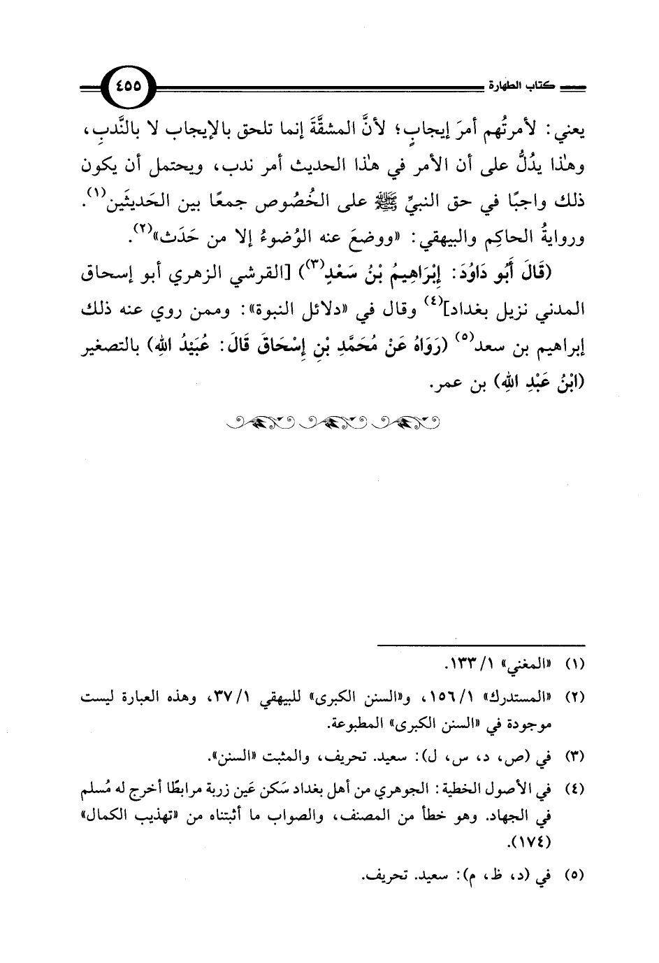 (¬2) "المستدرك" 1/ 156، و "السنن الكبرى" للبيهقي 1/ 37، وهذه العبارة ليست موجودة في "السنن الكبرى" المطبوعة.
