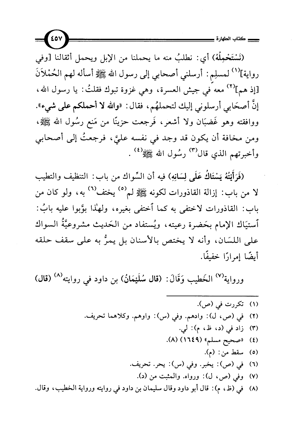 (¬8) في (ظ، م): قال أبو داود وقال سليمان بن داود في روايته ورواية الخطيب، وقال.