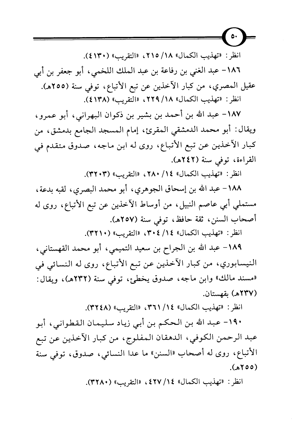 186 - عبد الغني بن رفاعة بن عبد الملك اللخمي، أبو جعفر بن أبي عقيل المصري، من كبار الآخذين عن تبع الأتباع، توفي سنة (255 هـ).