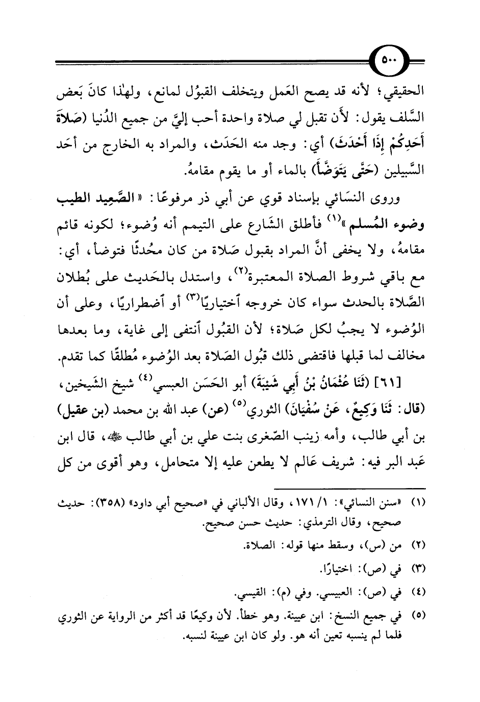 (¬1) "سنن النسائي": 1/ 171، وقال الألباني في "صحيح أبي داود" (358): حديث صحيح، وقال الترمذي: حديث حسن صحيح.