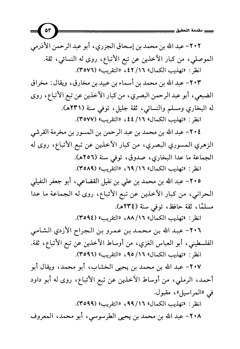 202 - عبد الله بن محمَّد بن إسحاق الجزري، أبو عبد الرحمن الأذرمي الموصلي، من كبار الآخذين عن تبع الأتباع، روى له النسائي، ثقة.