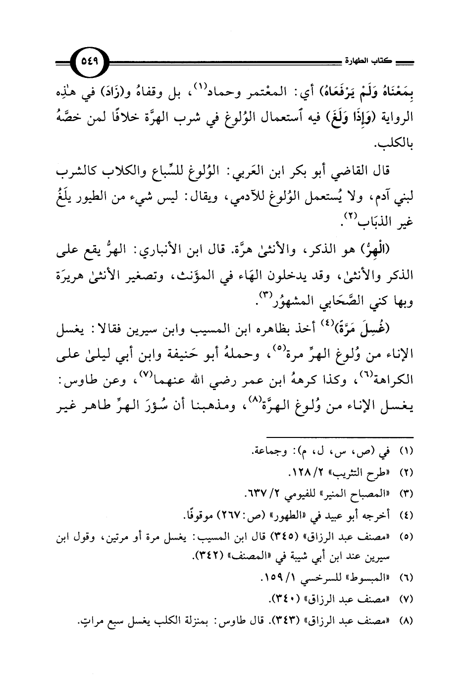 (¬5) "مصنف عبد الرزاق" (345) قال ابن المسيب: يغسل مرة أو مرتين، وقول ابن سيرين عند ابن أبي شيبة في "المصنف" (342).