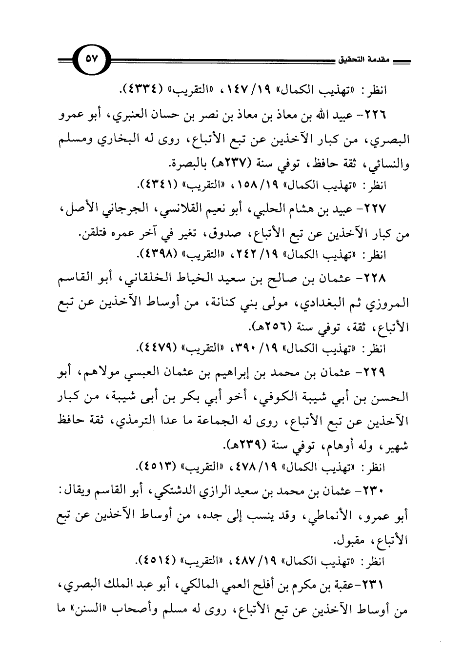 229 - عثمان بن محمَّد بن إبراهيم بن عثمان العبسي مولاهم، أبو الحسن بن أبي شيبة الكوفي، أخو أبي بكر بن أبي شيبة، من كبار الآخذين عن تبع الأتباع، روى له الجماعة ما عدا الترمذي، ثقة حافظ شهير، وله أوهام، توفي سنة (239 هـ).