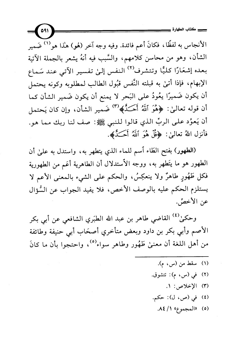 وحكى (¬4) القاضي طاهر بن عبد الله الطبَري الشافعي عن أبي بكر الأصم وأبي بكر بن داود وبعض متأخري أصحَاب أبي حنيفة وطائفة من أهل اللغة أن معنى طَهُور وطاهر سواء (¬5)، واحتجوا بأن ما كانَ