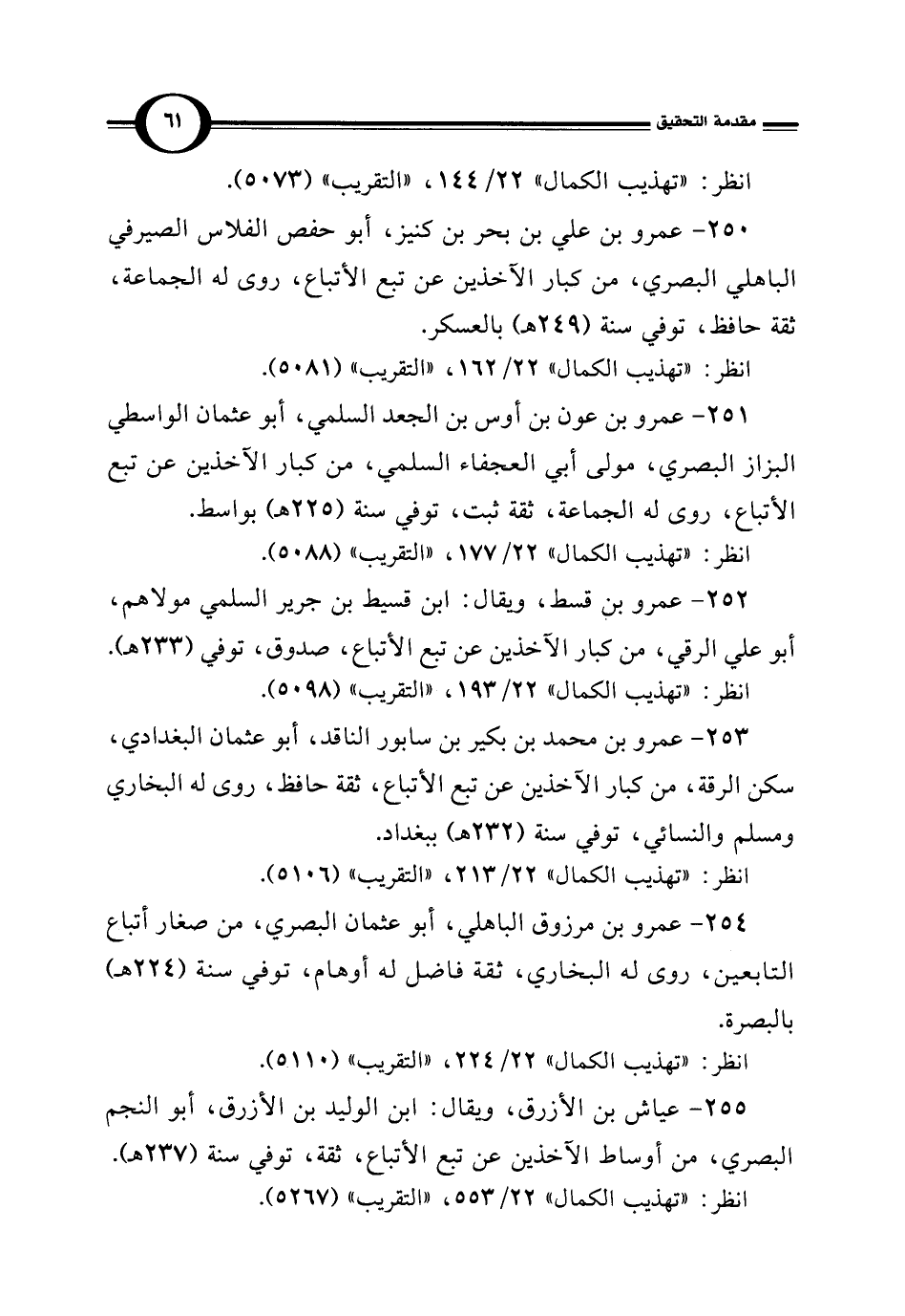 252 - عمرو بن قسط، ويقال: ابن قسيط بن جرير السلمي مولاهم، أبو علي الرقي، من كبار الآخذين عن تبع الأتباع، صدوق، توفي (233 هـ).