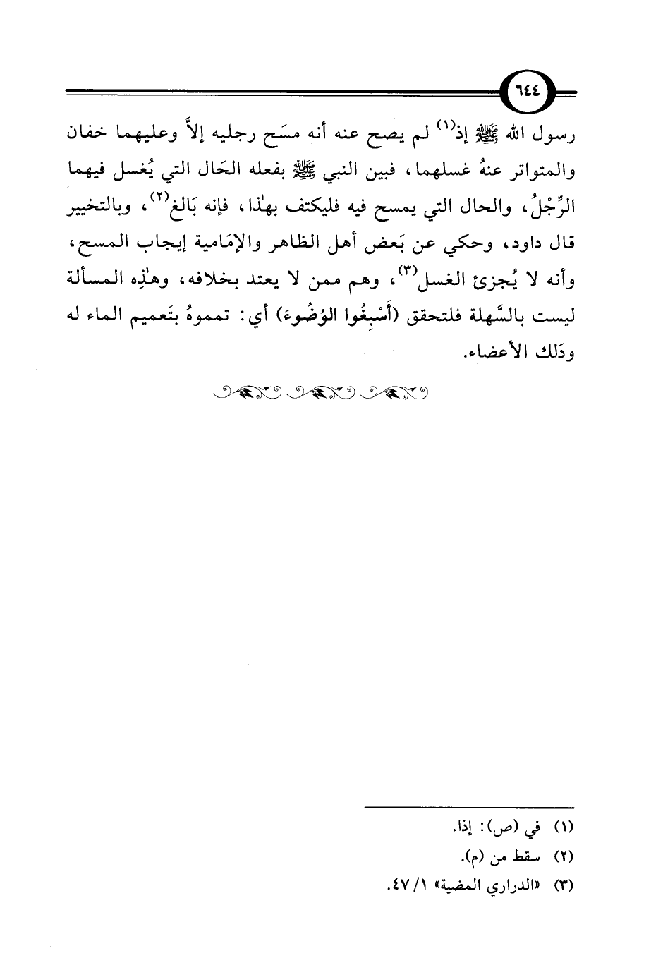 رسول الله - صلى الله عليه وسلم - إذ (¬1) لم يصح عنه أنه مسَح رجليه إلَّا وعليهما خفان والمتواتر عنهُ غسلهما، فبين النبي - صلى الله عليه وسلم - بفعله الحَال التي يُغسل فيهما الرِّجْلُ، والحال التي يمسح فيه فليكتف بهذا، فإنه بَالغ (¬2)، وبالتخيير قال داود، وحكي عن بَعض أهل الظاهر والإمَامية إيجاب المسح، وأنه لا يُجزئ الغسل (¬3)، وهم ممن لا يعتد بخلافه، وهذِه المسألة ليست بالسَّهلة فلتحقق (أَسْبِغُوا الوُضُوءَ) أي: تمموهُ بتَعميم الماء له ودَلك الأعضاء.