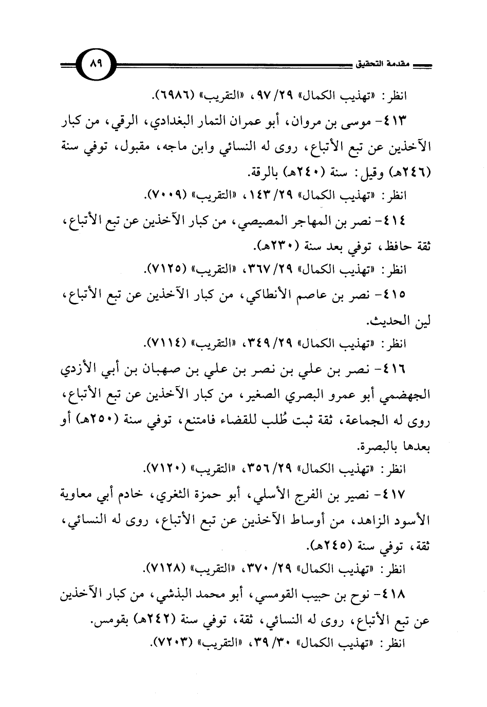 414 - نصر بن المهاجر المصيصي، من كبار الآخذين عن تبع الأتباع، ثقة حافظ، توفي بعد سنة (230 هـ).