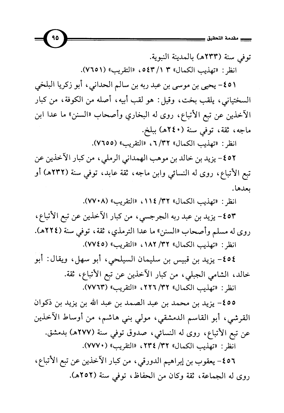 452 - يزيد بن خالد بن موهب الهمداني الرملي، من كبار الآخذين عن تبع الأتباع، روى له النسائي وابن ماجه، ثقة عابد، توفي سنة (232 هـ) أو بعدها.