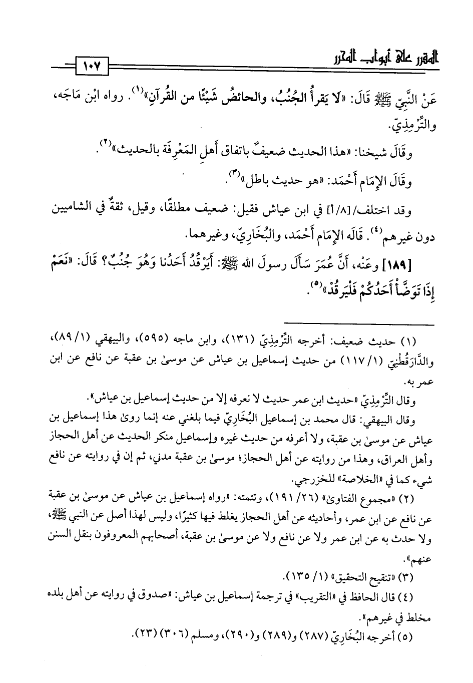 (¬1) حديث ضعيف: أخرجه التِّرْمِذِيّ (131)، وابن ماجه (595)، والبيهقي (1/ 89)، والدَّارَقُطْنِيّ (1/ 117) من حديث إسماعيل بن عياش عن موسى بن عقبة عن نافع عن ابن عمر به.