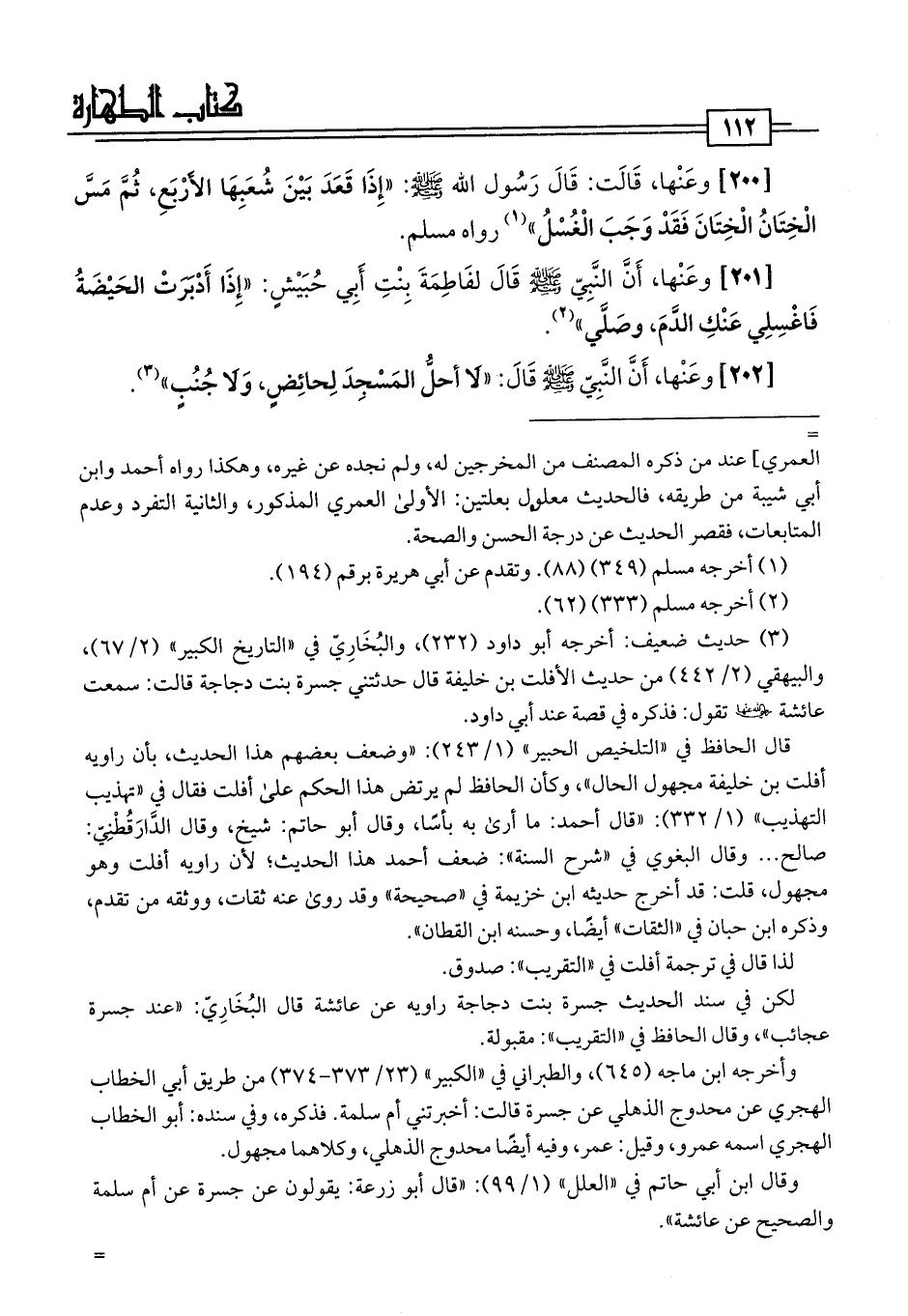 [202] وعَنْهَا، أَنَّ النَّبِيّ -صلى اللَّه عليه وسلم- قَالَ: "لَا أحلُّ المَسْجِدَ لِحائِضٍ، وَلَا جُنُبٍ" (¬3).