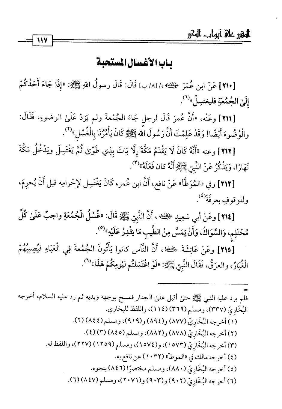 [210] عَن ابن عُمَرَ -رضي اللَّه عنهما-, قَالَ: قَالَ رسولُ اللَّهِ -صلى اللَّه عليه وسلم-: "إِذَا جَاءَ أَحَدُكُمْ إِلَى الجُمُعَةِ فليغتسِلْ" (¬1).