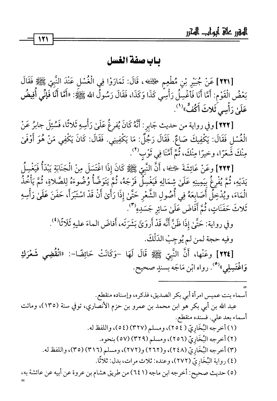 [224] وعَنْهَا، أَنَّ النَّبِيّ -صلى اللَّه عليه وسلم- قَالَ لَهَا -وَكَانَتْ حَائِضًا-: "انْقُضِي شَعْرَكِ وَاغْتَسِلِي" (¬5). رواه ابْن مَاجَه بسندٍ صحيح.