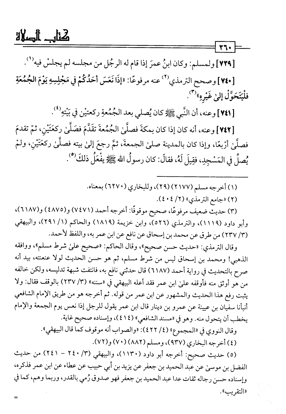 [741] وعنه، أن النَّبي -صلى اللَّه عليه وسلم- كان يُصلي بعد الجُمُعةِ ركعتيْن في بَيْتهِ (¬4).