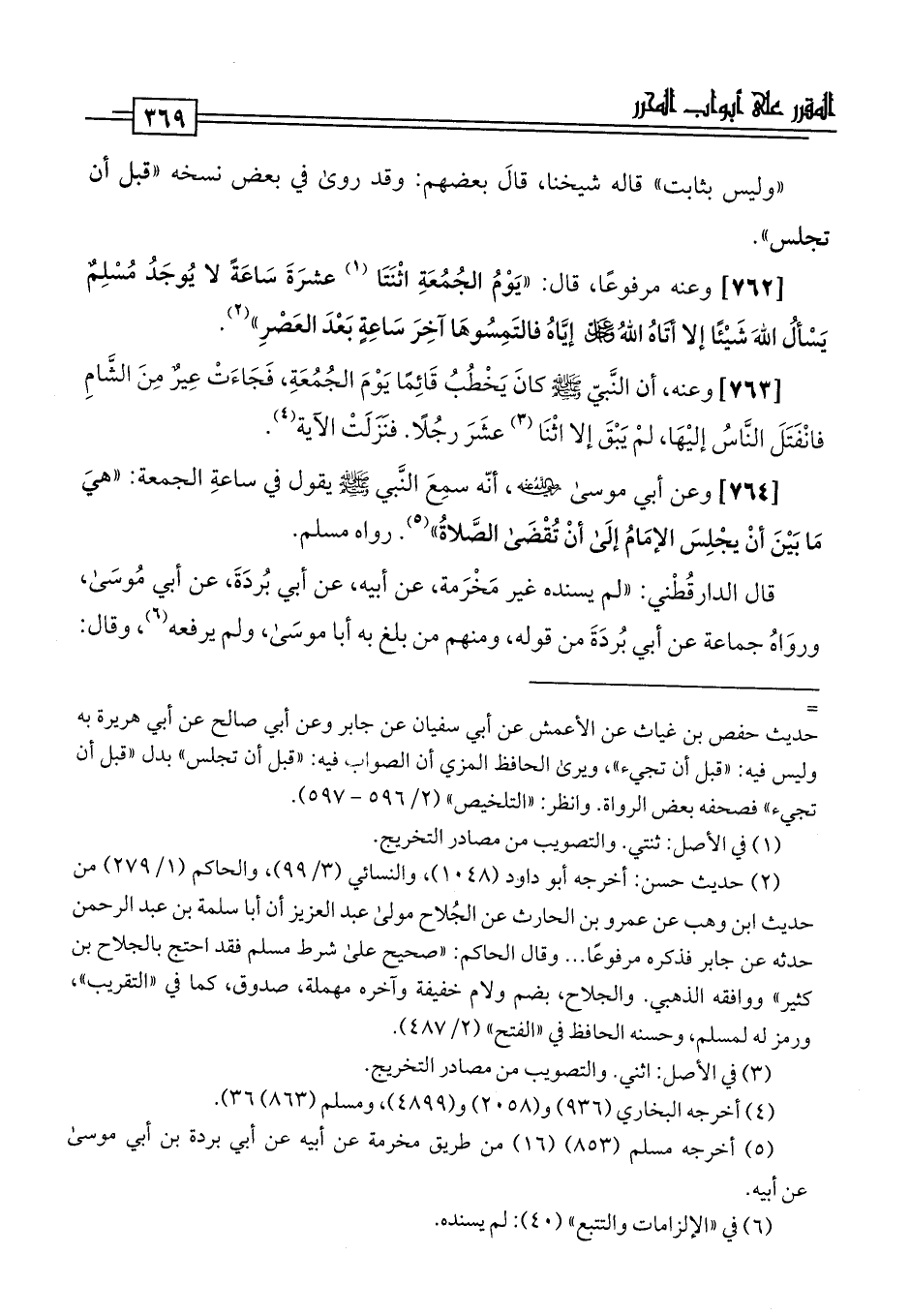 [762] وعنه مرفوعًا، قال: "يَوْمُ الجُمُعَةِ اثْنَتَا (¬1) عشرَةَ سَاعَةً لا يُوجَدُ مُسْلِمٌ يَسْألُ اللَّهَ شَيْئًا إلا أتَاهُ اللَّهُ عز وجل إيَّاهُ فالتَمِسُوهَا آخِرَ سَاعِةٍ بَعْدَ العَصْرِ" (¬2).