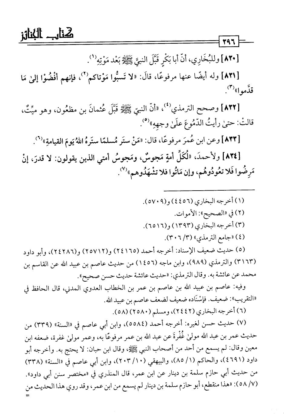 [831] وله أيضًا عنها مرفوعًا، قَالَ: "لا تَسبُّوا مَوْتاكم (¬2)، فإنهم أفْضُوْا إلى مَا قدَّموا" (¬3).