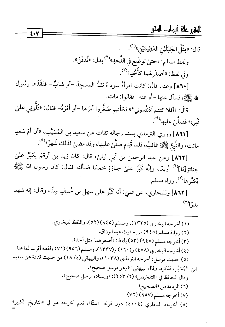 [863] وللبخاري، عن عليّ: أنه كَبَّر على سهل بن حُنيفٍ سِتًا، وقال: إنه شهد بدرًا (¬8).