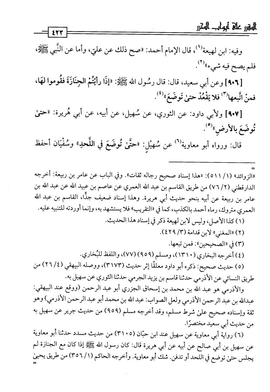 [907] ولأبي داود: عن الثوري، عن سُهيل، عن أبيه، عن أبي هُريرة: "حتى تُوضَعَ بالأرضِ" (¬5).