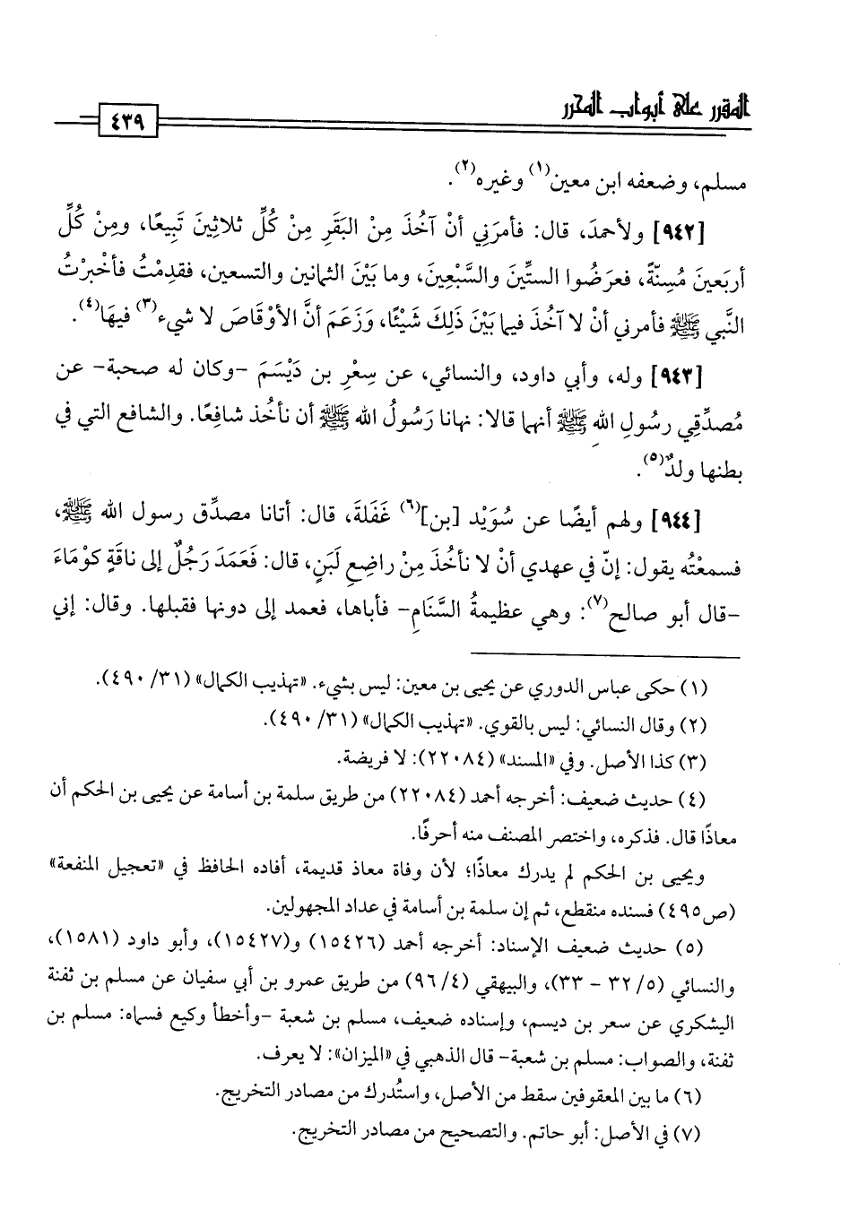 [942] ولأحمدَ، قال: فأمرَنِي أنْ آخُذَ مِنْ البَقَرِ مِنْ كُلِّ ثلاثِينَ تَبِيعًا، ومِنْ كُلِّ أربَعينَ مُسِنّةً، فعرَضُوا الستِّينَ والسَّبْعِينَ، وما بَيْنَ الثمانين والتسعين، فقدِمْتُ فأخْبرْتُ النَّبي -صلى اللَّه عليه وسلم- فأمرني أنْ لا آخُذَ فيما بَيْنَ ذَلِكَ شَيْئًا، وَزَعَمَ أنَّ الأوْقَاصَ لا شيء (¬3) فيهَا (¬4).