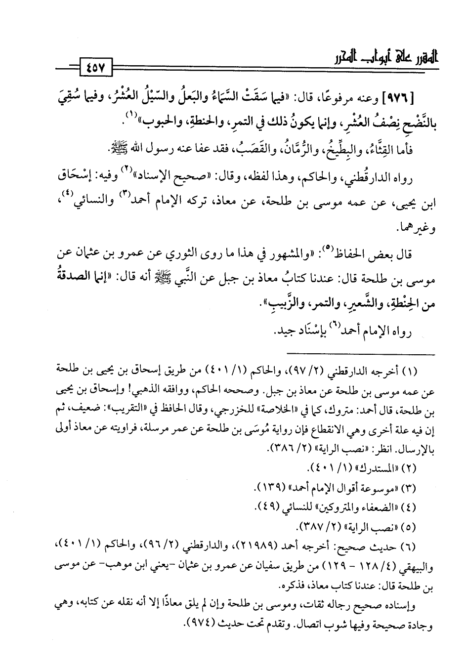 وإسناده صحيح رجاله ثقات، وموسى بن طلحة وإن لم يلق معاذا إلا أنه نقله عن كتابه، وهي وجادة صحيحة وفيها شوب اتصال. وتقدم تحت حديث (974).
