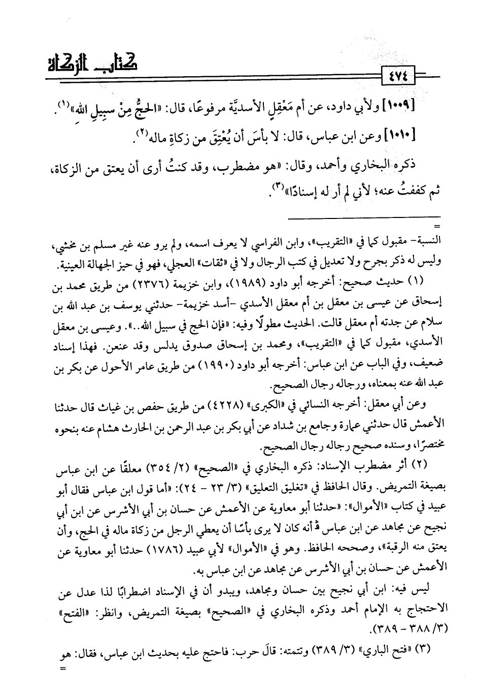 (¬2) أثر مضطرب الإسناد: ذكره البخاري في "الصحيح" (2/ 354) معلقًا عن ابن عباس بصيغة التمريض. وقال الحافظ في "تغليق التعليق" (3/ 23 - 24): "أما قول ابن عباس فقال أبو عبيد في كتاب "الأموال": "حدثنا أبو معاوية عن الأعمش عن حسان بن أبي الأشرس عن ابن أبي نجيح عن مجاهد عن ابن عباس فإنه كان لا يرى بأسًا أن يعطي الرجل من زكاة ماله في الحج، وأن يعتق منه الرقبة"، وصححه الحافظ. وهو في "الأموال" لأبي عبيد (1786) حدثنا أبو معاوية عن الأعمش عن حسان بن أبي الأشرس عن مجاهد عن ابن عباس به.