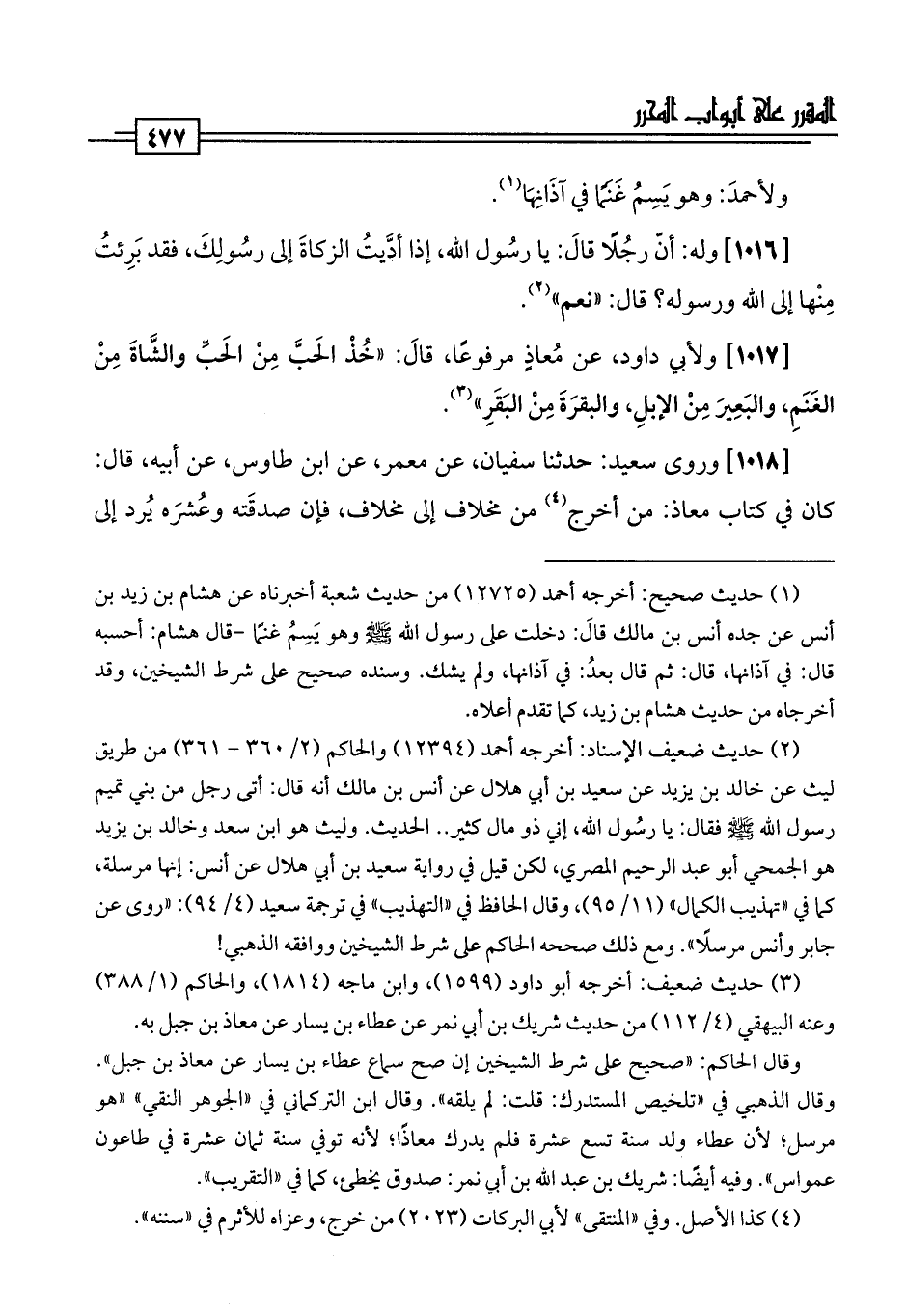 (¬3) حديث ضعيف: أخرجه أبو داود (1599)، وابن ماجه (1814)، والحاكم (1/ 388) وعنه البيهقي (4/ 112) من حديث شريك بن أبي نمر عن عطاء بن يسار عن معاذ بن جبل به.