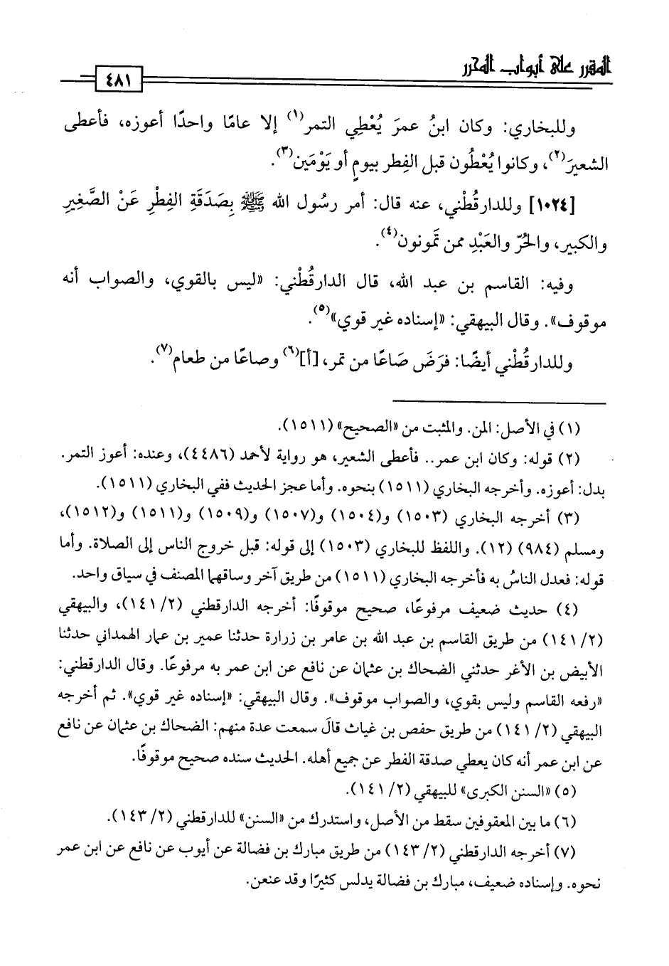 [1024] وللدارقُطْني، عنه قال: أمر رسُول اللَّه -صلى اللَّه عليه وسلم- بِصَدَقَةِ الفِطْرِ عَنْ الصَّغِيرِ والكبير، والحُرّ والعَبْدِ ممن تَمونون (¬4).