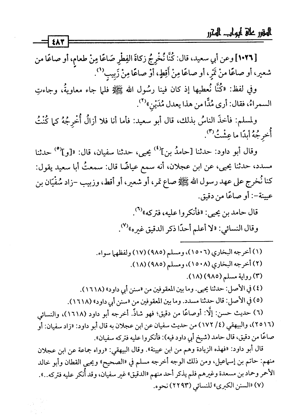 قال أبو داود: "فهذه الزيادة وهم من ابن عيينة". وقال البيهقي: "رواه جماعة عن ابن عجلان منهم: حاتم بن إسماعيل، ومن ذلك الوجه أخرجه مسلم في "الصحيح" ويحيى القطان وأبو خالد الأحمر وحماد بن مسعدة وغيرهم فلم يذكر أحد منهم "الدقيق" غير سفيان، وقد أُنكر عليه فتركه. . ".