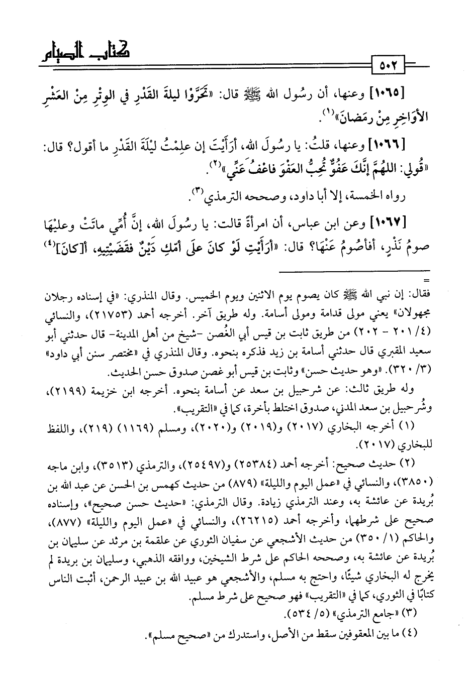 [1066] وعنها، قلتُ: يا رسُولَ اللَّه، أرَأَيْتَ إن علِمْتُ ليْلَةَ القَدْرِ ما أقول؟ قال: "قُولي: اللهُمَّ إنَّكَ عَفُوٌّ تُحِبُّ العَفْوَ فاعْفُ عَنِّي" (¬2).