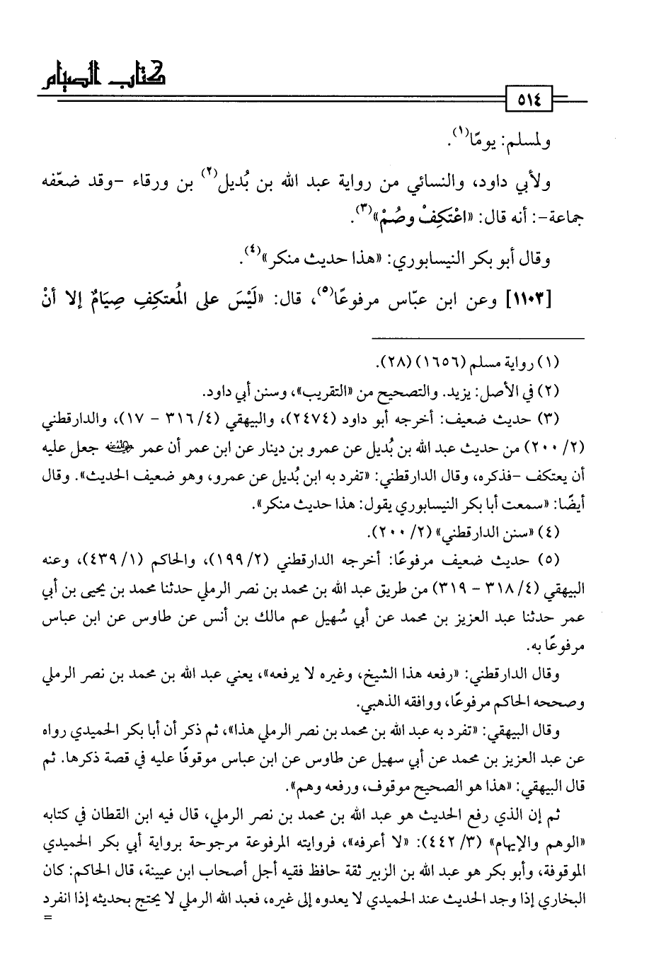 [1103] وعن ابن عبّاس مرفوعًا (¬5)، قال: "لَيْسَ على المُعتكِفِ صِيَامٌ إلا أنْ