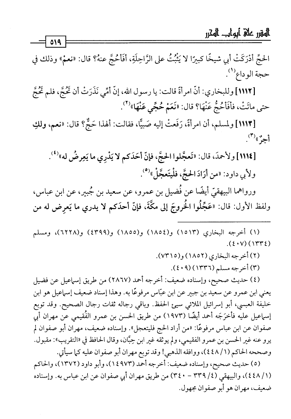 ولأبي داود: "من أرَادَ الحجَّ، فلْيتَعجَّلْ" (¬5).