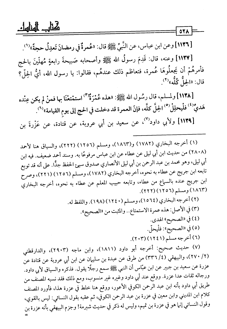 [1136] وعن ابن عباس، عن النَّبِيّ -صلى اللَّه عليه وسلم- قال: "عُمرةٌ في رمضانَ تَعدِلُ حجةً" (¬1).