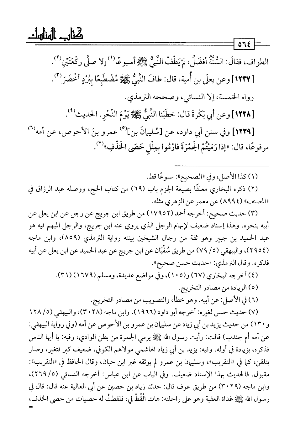 [1238] وعن أبي بَكْرةَ قال: خطَبَنا النَّبيُّ -صلى اللَّه عليه وسلم- يَوْمَ النّحْرِ. الحديث (¬4).