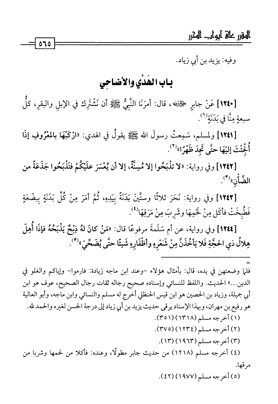 = فلما وضعتهن في يده، قال: بأمثال هؤلاء -وعند ابن ماجه زيادة: فارموا- وإياكم والغلو في الدين. . . " الحديث. واللفظ لنسائي وإسناده صحيح رجاله ثقات رجال الصحيح، عوف هو ابن أبي جميلة، وزياد بن الحصين هو ابن قيس الحنظلي أخرج له مسلم والنسائي وابن ماجه، وأبو العالية هو رفيع بن مهران، وبهذا الإسناد يرقى حديث يزيد بن أبي زياد إلى درجة الحسن لغيره والحمد للَّه.