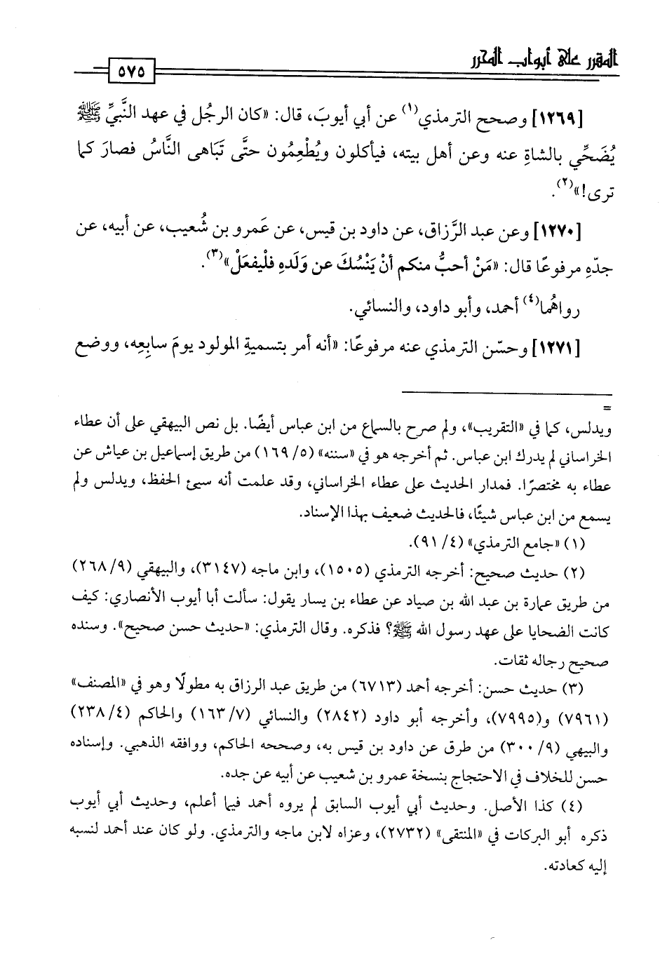 [1270] وعن عبد الرَّزاق، عن داود بن قيس، عن عَمرو بن شُعيب، عن أبيه، عن جدّهِ مرفوعًا قال: "مَنْ أحبُّ منكم أنْ يَنْسُكَ عن وَلَدهِ فلْيفعَلْ" (¬3).