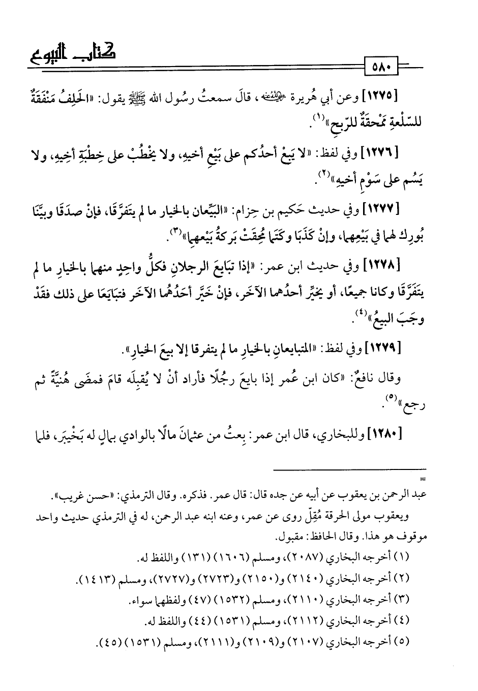 [1276] وفي لفظ: "لا يَبعْ أحدُكم على بَيْعِ أخيهِ، ولا يخْطُبْ على خِطْتةِ أخِيهِ، ولا يَسُم على سَوْمِ أخيهِ" (¬2).