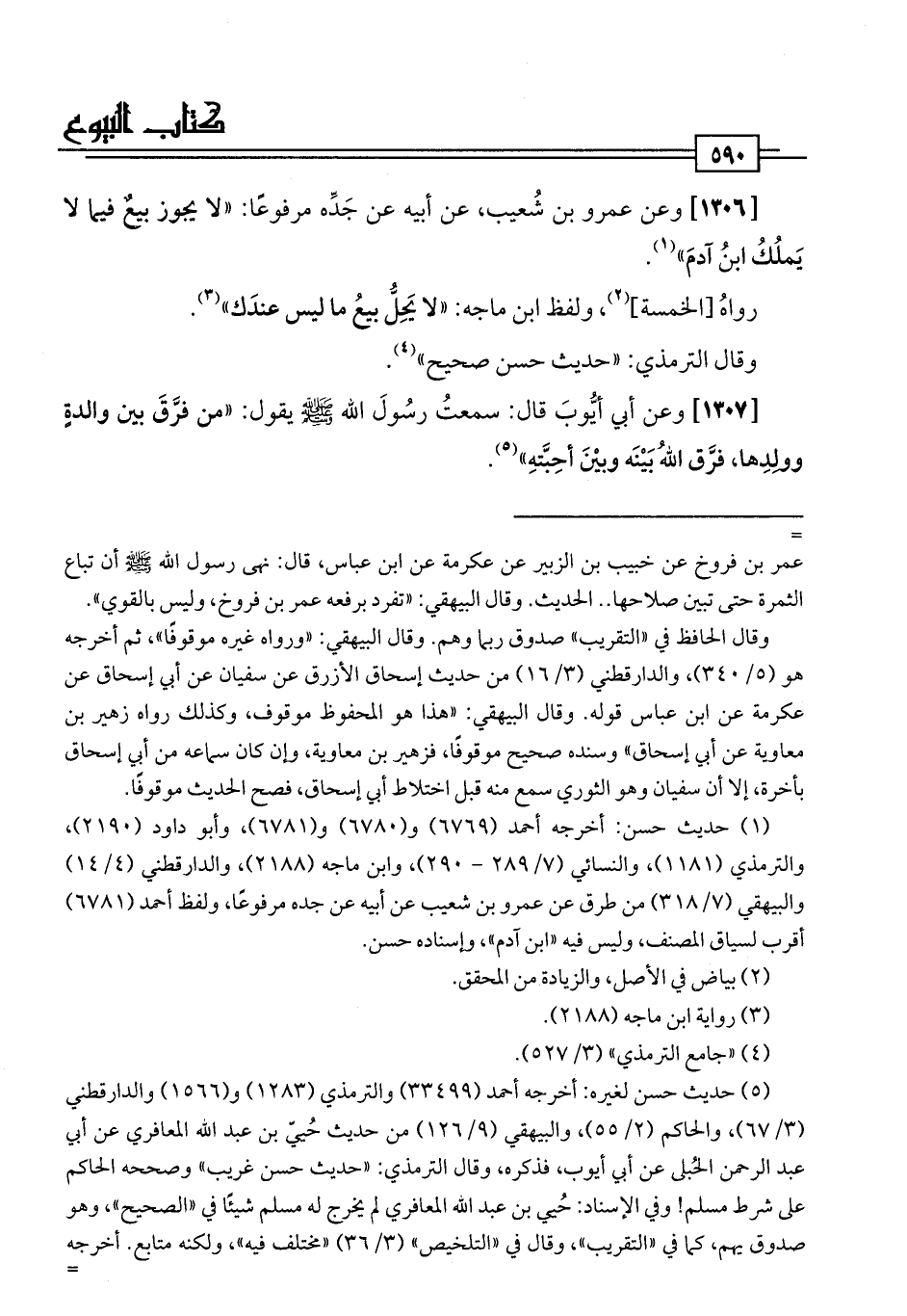 [1306] وعن عمرو بن شُعيب، عن أبيه عن جَدِّه مرفوعًا: "لا يجوز بيعٌ فيما لا يَملُكُ ابنُ آدمَ" (¬1).