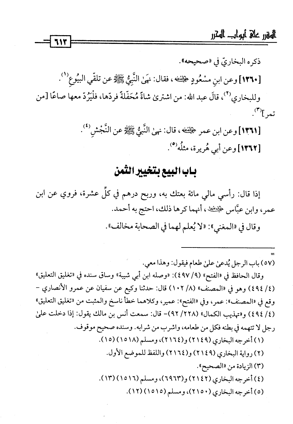 [1360] وعن ابنِ مسْعودٍ -رضي اللَّه عنه-، فقال: نهَى النَّبِيُّ -صلى اللَّه عليه وسلم- عن تلقّي البيُوعِ (¬1).
