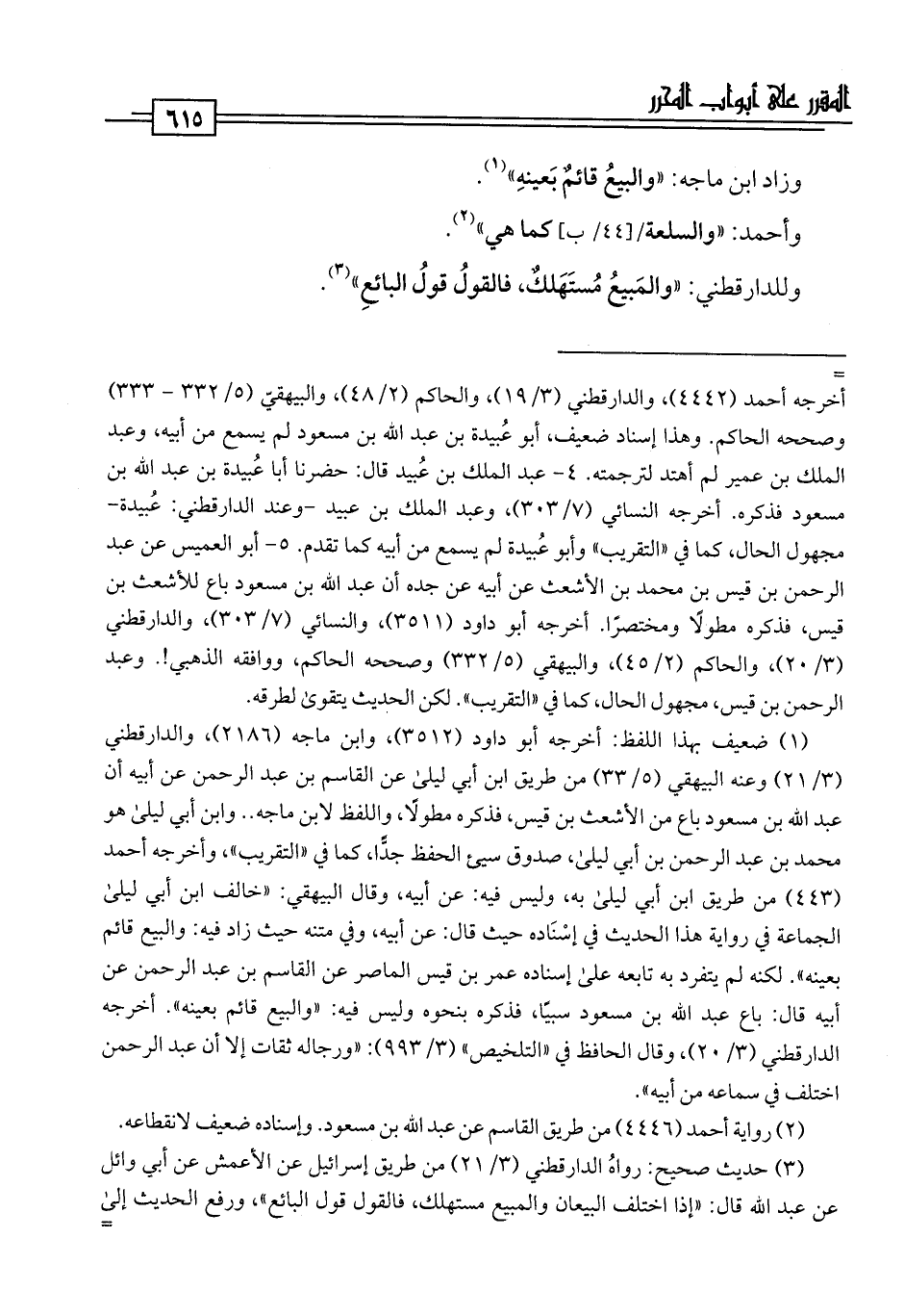 (¬3) حديث صحيح: رواهُ الدارقطني (3/ 21) من طريق إسرائيل عن الأعمش عن أبي وائل عن عبد اللَّه قال: "إذا اختلف البيعان والمبيع مستهلك، فالقول قول البائع"، ورفع الحديث إلى =
