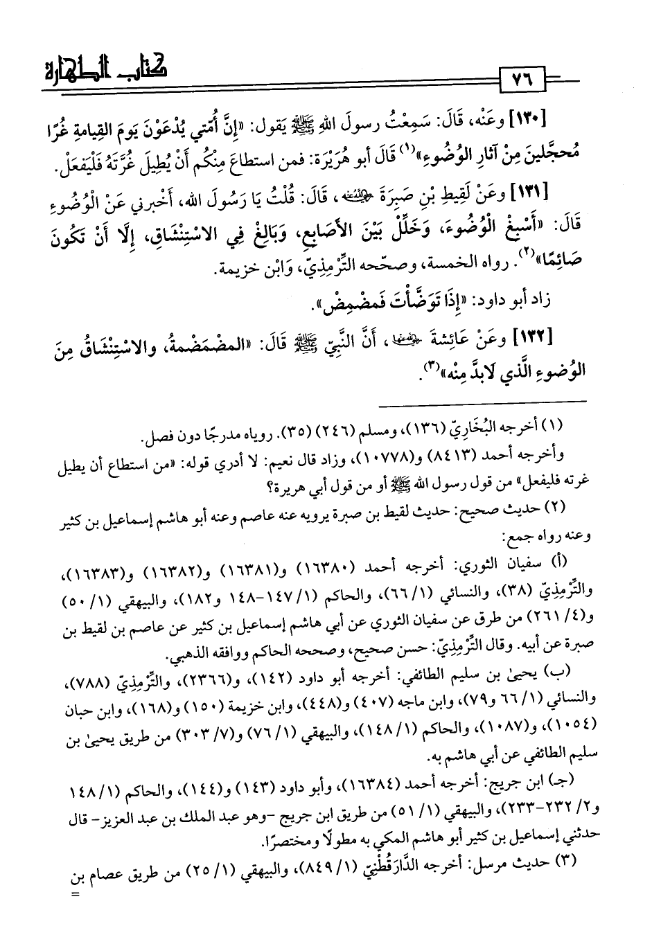 (أ) سفيان الثوري: أخرجه أحمد (16380) و (16381) و (16382) و (16383)، والتِّرْمِذِيِّ (38)، والنسائي (1/ 66)، والحاكم (1/ 147 - 148 و 182)، والبيهقي (1/ 50) و (4/ 261) من طرق عن سفيان الثوري عن أبي هاشم إسماعيل بن كثير عن عاصم بن لقيط بن صبرة عن أبيه. وقال التِّرْمِذِيِّ: حسن صحيح، وصححه الحاكم ووافقه الذهبي.