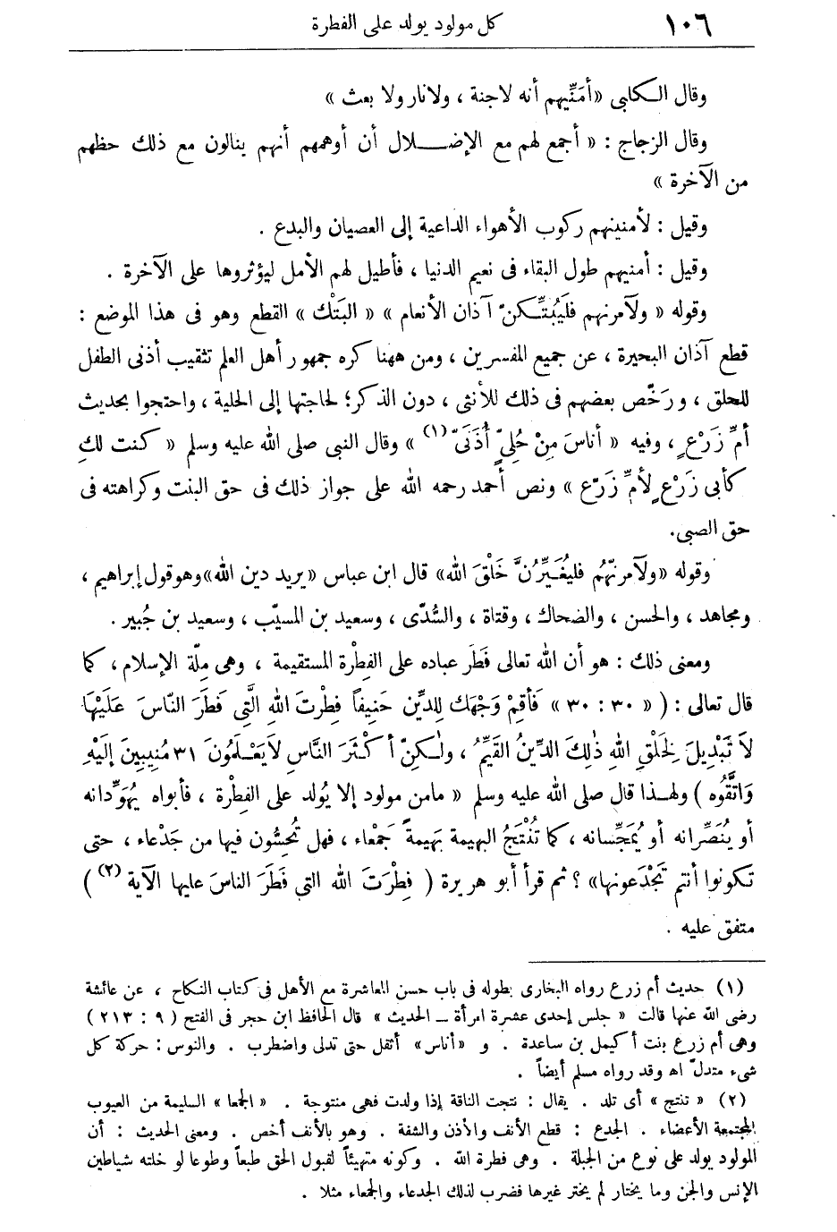 ثم قرأ أبو هريرة: {فِطرَتَ اللهِ الّتِى فَطَرَ النَّاسَ عَلَيْهَا} [الروم: 30] الآية، متفق عليه.