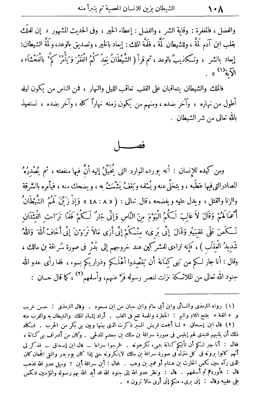 والفضل، فالمغفرة: وقاية الشر، والفضل: إعطاء الخير، وفى الحديث المشهور: "إن للمَلك بقلب ابن آدم لمة، وللشيطان لمة، فلمة الملك: إيعاد بالخير، وتصديق بالوعد، ولمة الشيطان: إيعاد بالشر، وتكذيب بالوعد"، ثم قرأ: {الشَّيْطَانُ يَعِدُكُمُ الْفَقْرَ وَيَأْمُرُكُمْ بِالْفَحْشَاءِ} [البقرة: 268] الآية.
