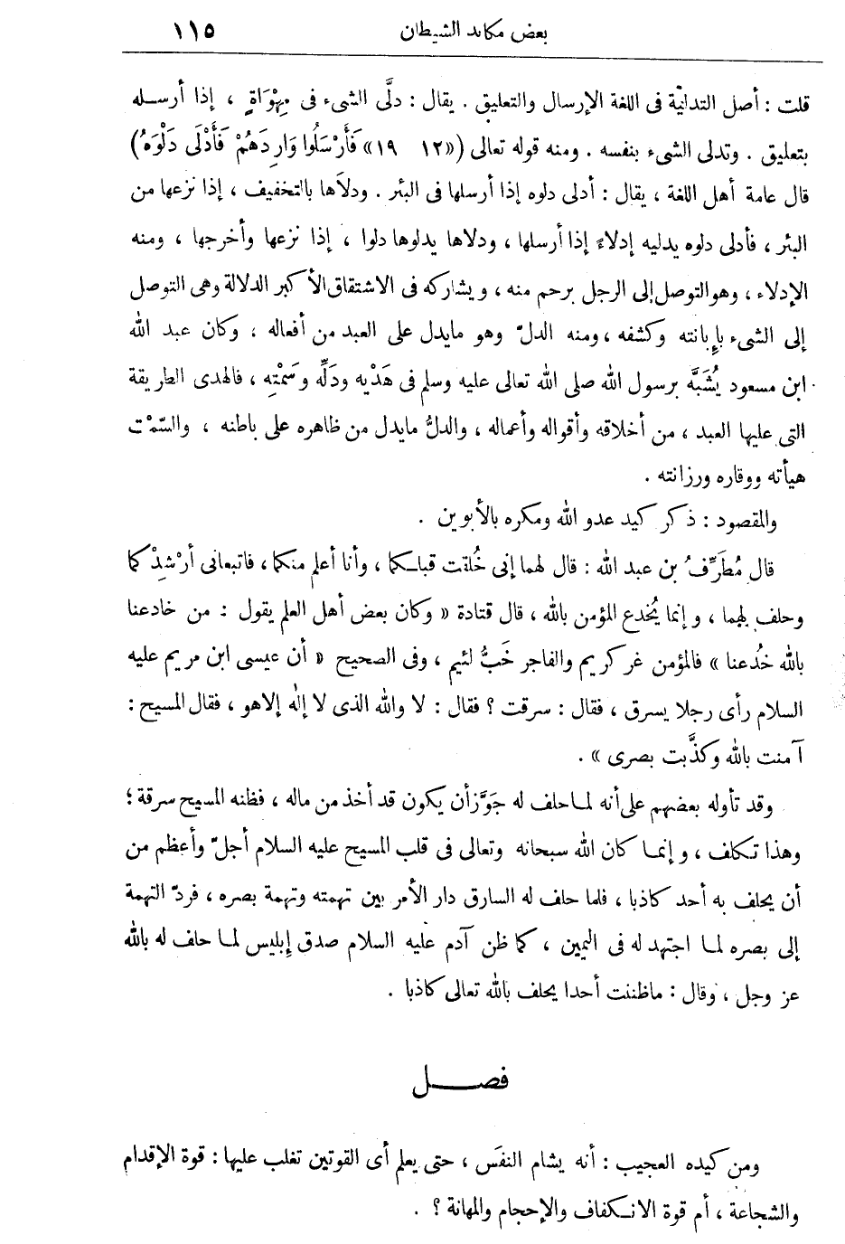 ومن كيده العجيب: أنه يشام النفس، حتى يعلم أى القوتين تغلب عليها: قوة الإقدام والشجاعة، أم قوة الانكفاف والإحجام والمهانة؟.
