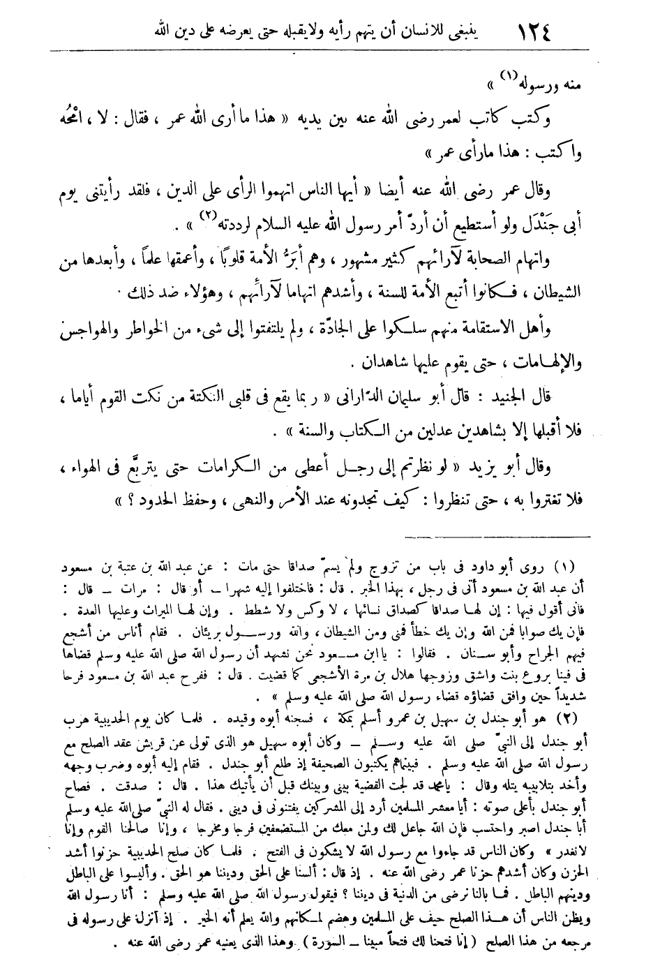 وقال عمر رضى الله عنه أيضا: "أيها الناس اتهموا الرأى على الدين، فلقد رأيتنى يوم أبى جندل ولو أستطيع أن أرد أمر رسول الله عليه السلام لرددته".