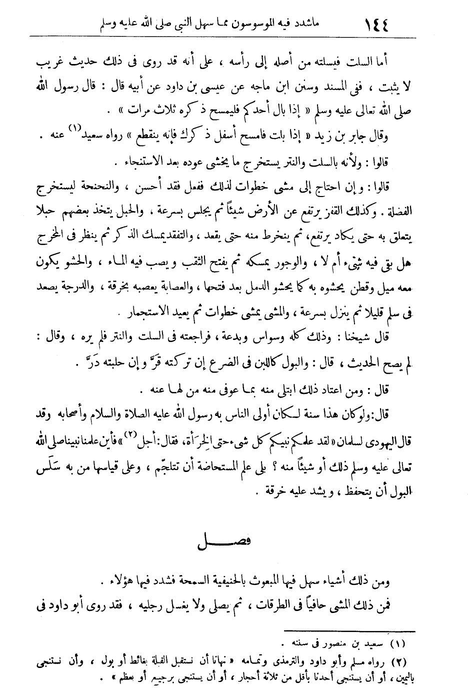قال: "ولو كان هذا سنة لكان أولى الناس به رسول الله عليه الصلاة والسلام وأصحابه"، وقد قال اليهودى لسلمان: "لقد علمكم نبيكم كل شىء حتى الخرأة، فقال: أجل"، فأين علمنا نبينا صلى الله تعالى عليه وسلم ذلك أو شيئاً منه؟ بلى علم المستحاضة أن تتلجم، وعلى قياسها من به سلس البول أن يتحفظ، ويشد عليه خرقة.