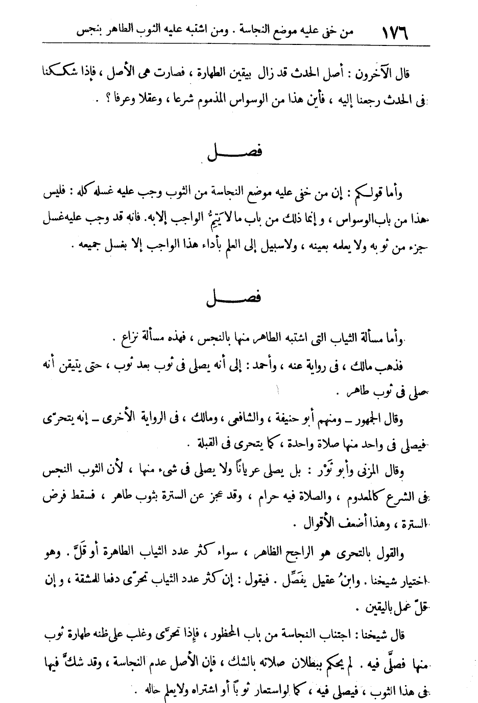 وأما مسألة الثياب التى اشتبه الطاهر منها بالنجس، فهذه مسألة نزاع.