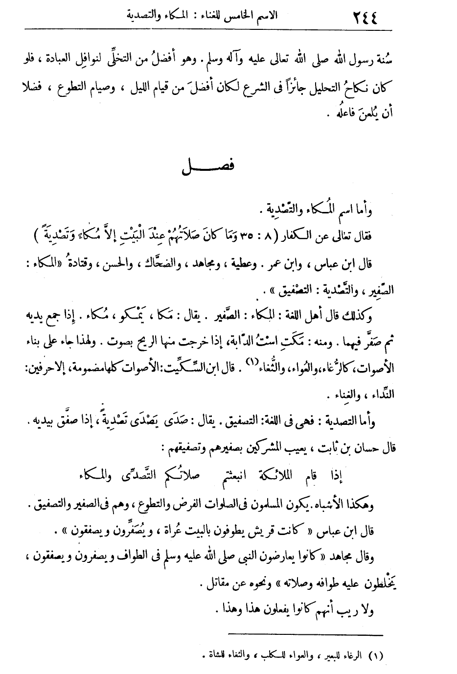 وهكذا الأشباه يكون المسلمون فى الصلوات الفرض والتطوع، وهم فى الصفير والتصفيق.