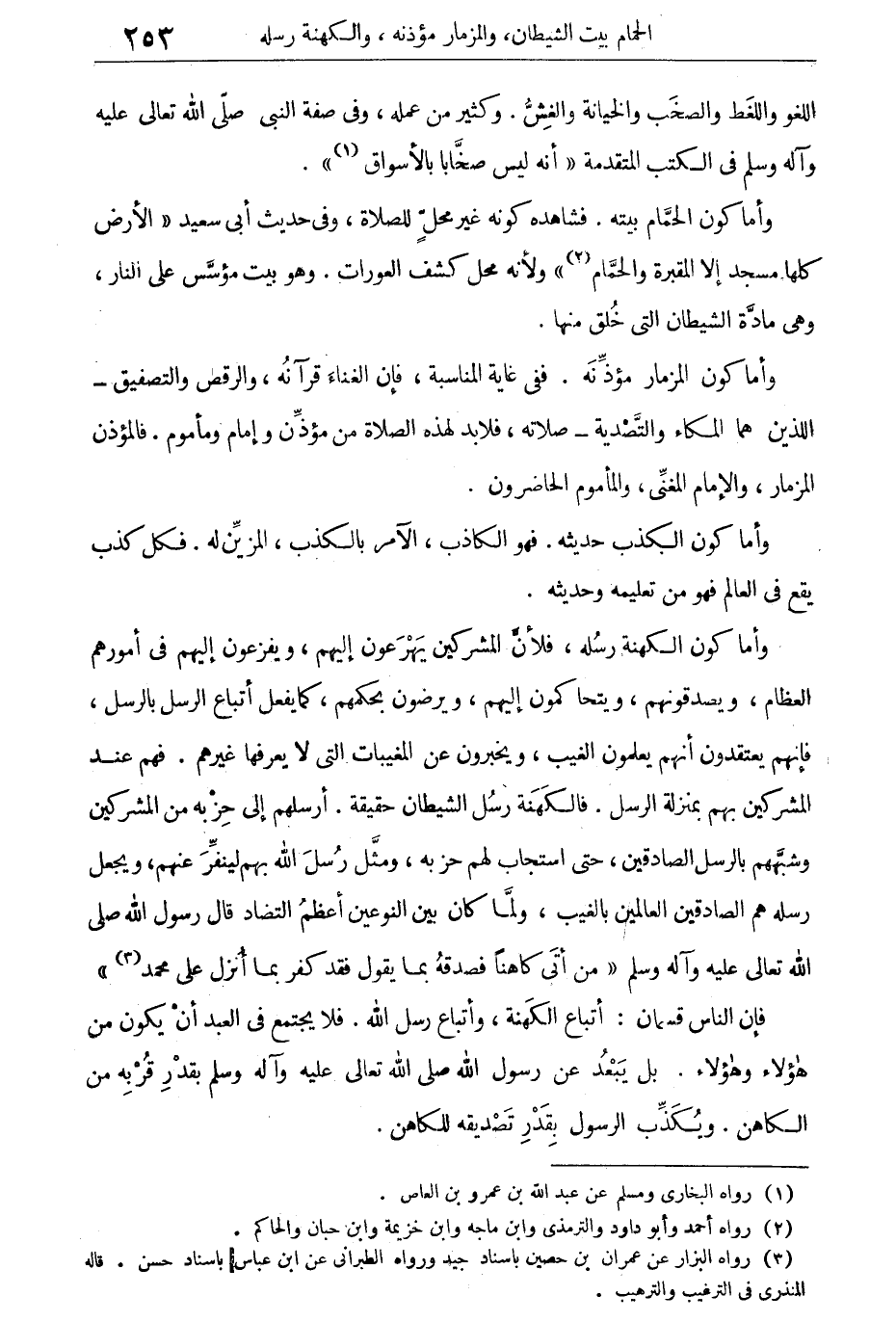 فإن الناس قسمان: أتباع الكهنة، وأتباع رسل الله، فلا يجتمع فى العبد أن يكون من هؤلاء وهؤلاء، بل يبعد عن رسول الله صلى الله تعالى عليه وآله وسلم بقدر قربه من الكاهن، ويكذب الرسول بقدر تصديقه للكاهن